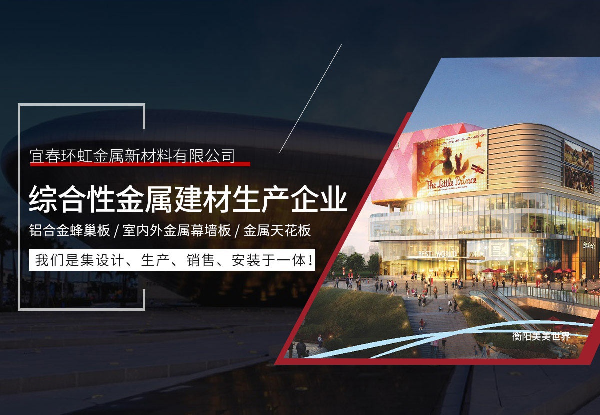 宜春環(huán)虹金屬新材料有限公司總部位于廣東省佛山市創(chuàng)立于2011年。公司建設(shè)有高標(biāo)準(zhǔn)的現(xiàn)代化工業(yè)生產(chǎn)廠房及完備的生活配套設(shè)施,是一家生產(chǎn)鋁單板、鋁合金蜂窩板、室內(nèi)外金屬幕墻板、金屬天花板等新型建筑裝飾材料的現(xiàn)代化企業(yè)。從產(chǎn)品設(shè)計(jì)到生產(chǎn)檢驗(yàn)、施工安裝及服務(wù)都嚴(yán)格按照ISO09001和ISO14001 2015質(zhì)量與環(huán)境保證體系實(shí)行嚴(yán)格的控制和管理,并著力為客戶提供優(yōu)良的個(gè)性化服務(wù)和相關(guān)解決方案。公司擁有一批高素質(zhì)、高水平的...